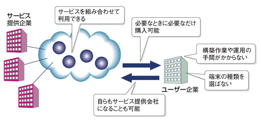 - 技術的に新登場したというより、ユーザー(企業)が第三者にデータを預けるシステムを許容したことが大きい ← ここにも民間ウェブの影響はある(Gmailなど)