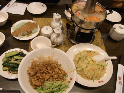メニューを解読。街中よりはちょっと高いですが、温泉がタダと思えばまあ日本よりずっと安上がり。アスパラサラダと蒸し蝦、鳥の炒め物と名物のおかゆ鍋を頼みましたが、一品余計でした。分量的にも温泉無料GET的にも。でもどれもとても美味しかったです。