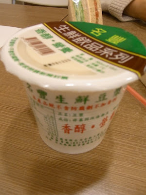 サンドイッチはまあまあ。豆乳は甘みが強いけど豆乳くささが少なくおいしい。たまに僕らみたいに座って食べる人がいるけど、テイクアウトの人の方が多い。